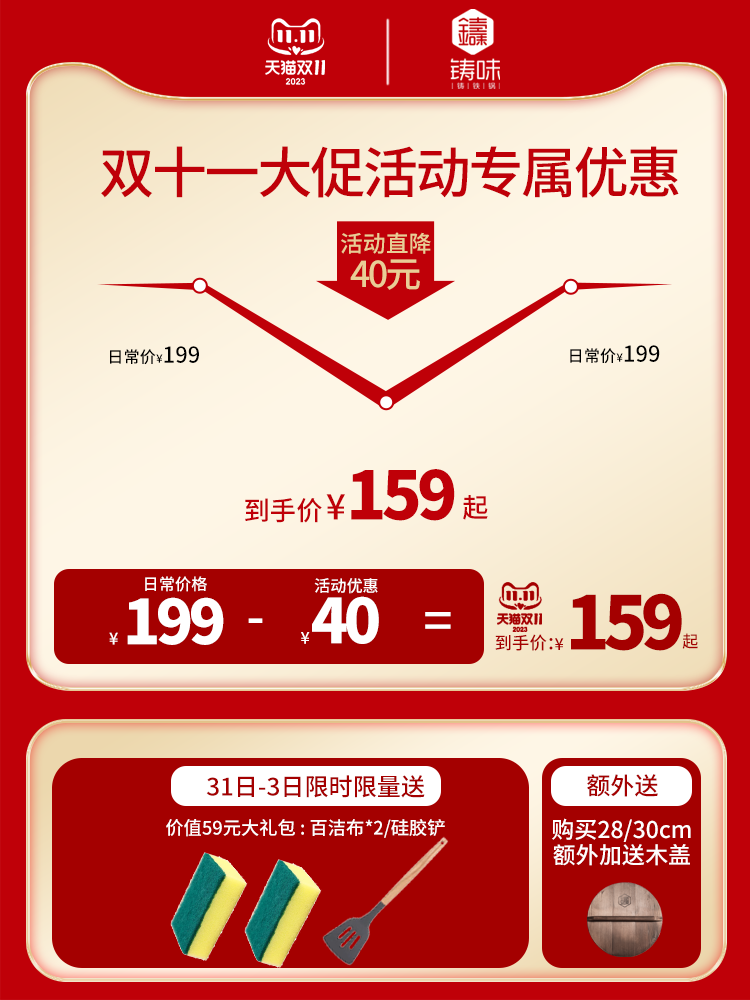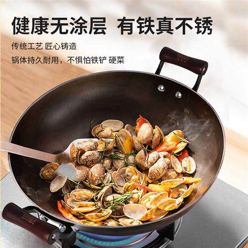 铸味真不锈 | 36-50cm物理不粘无涂层生铁双耳铸铁家用炒锅炒菜