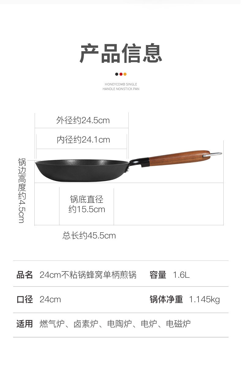 铸味铸铁24cm牛排锅不粘锅单柄无油烟蜂窝煎盘电磁灶燃气通用煎锅