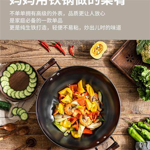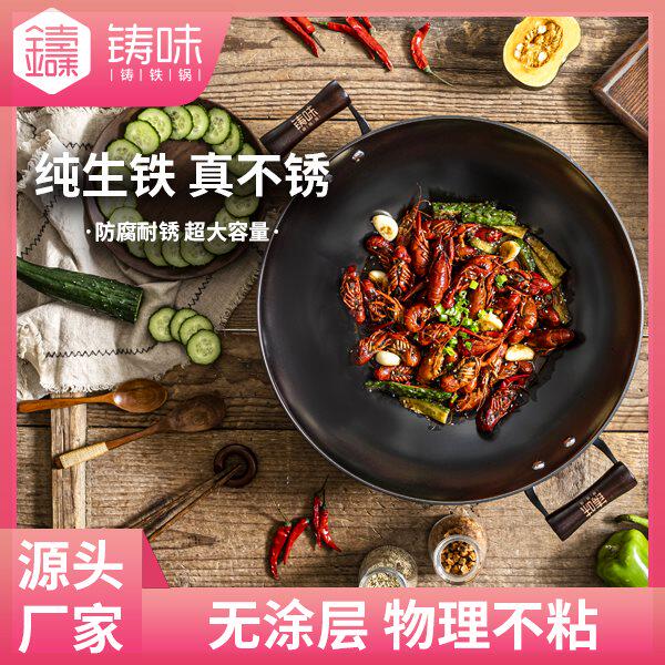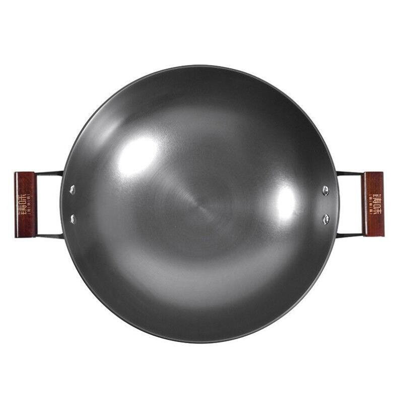 铸味双耳加深加厚铸铁炒锅手工铁锅无涂层真不锈不粘锅家用大炒锅