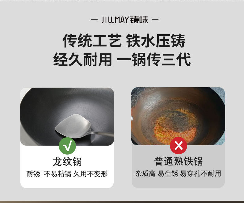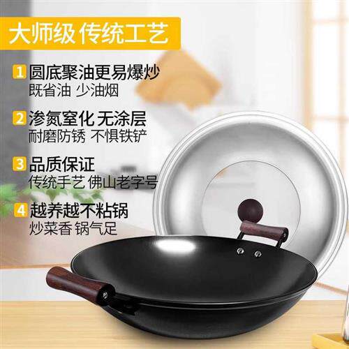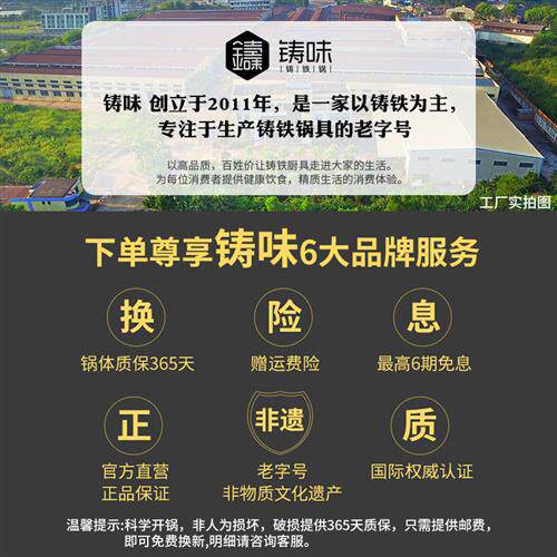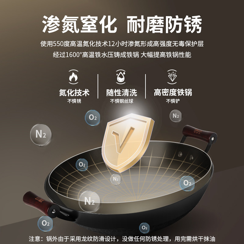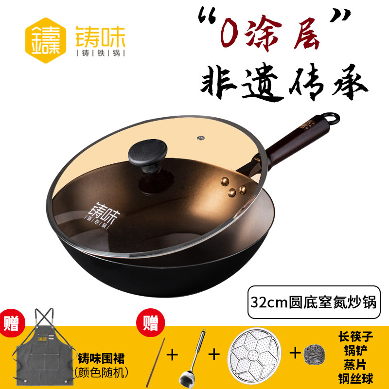 铸味铸铁锅无涂层窒氮少油烟电磁炉专用传统炒锅不粘锅家用炒菜锅