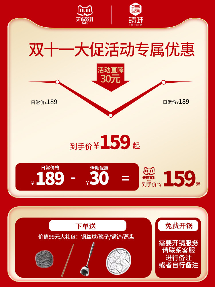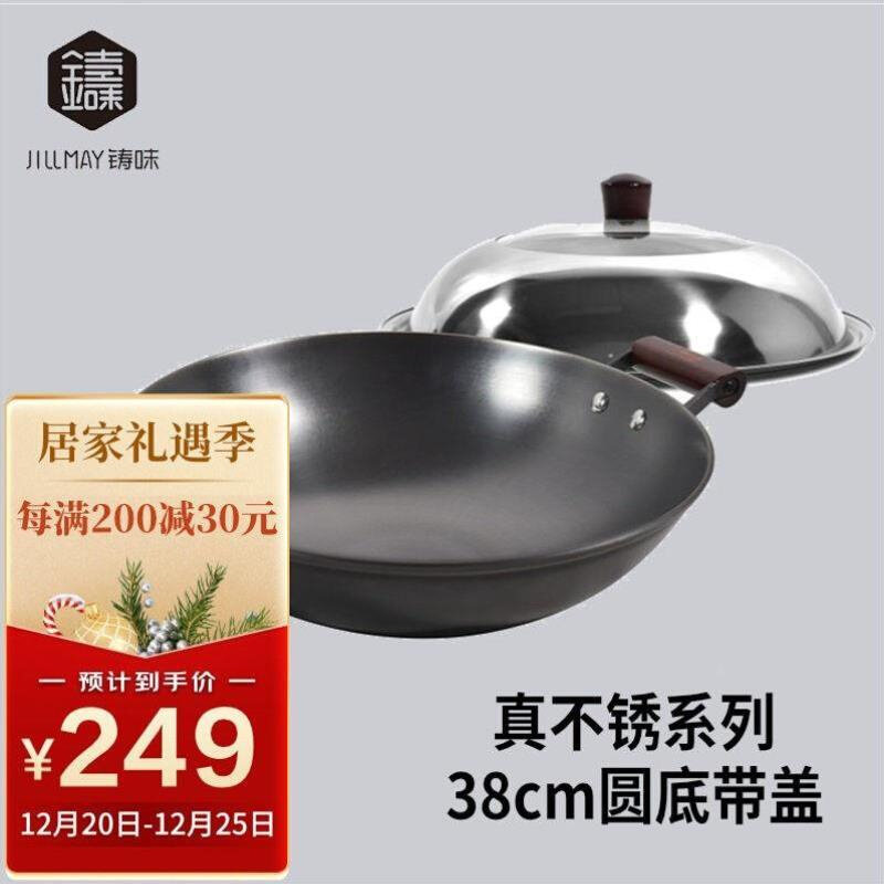 新品铸味b炒锅38cm真不锈铸铁锅爆炒炒锅双耳锅具不易粘锅家用圆