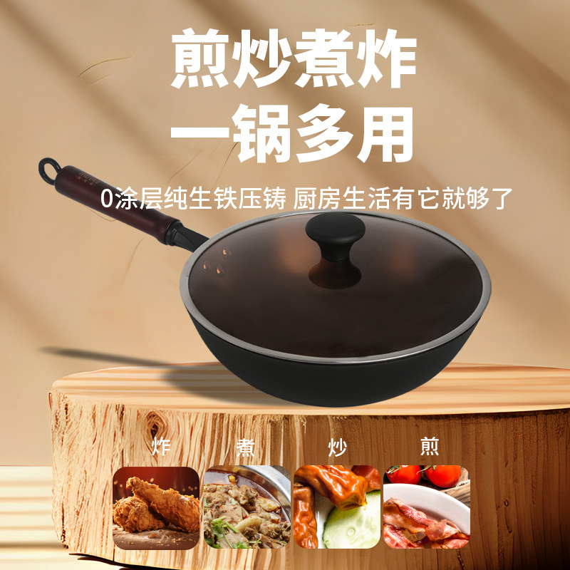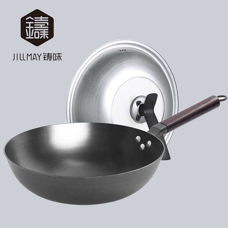 铸味铸铁锅真不锈无涂层少油烟电磁炉通用生铁锅燃气炒锅不易粘锅