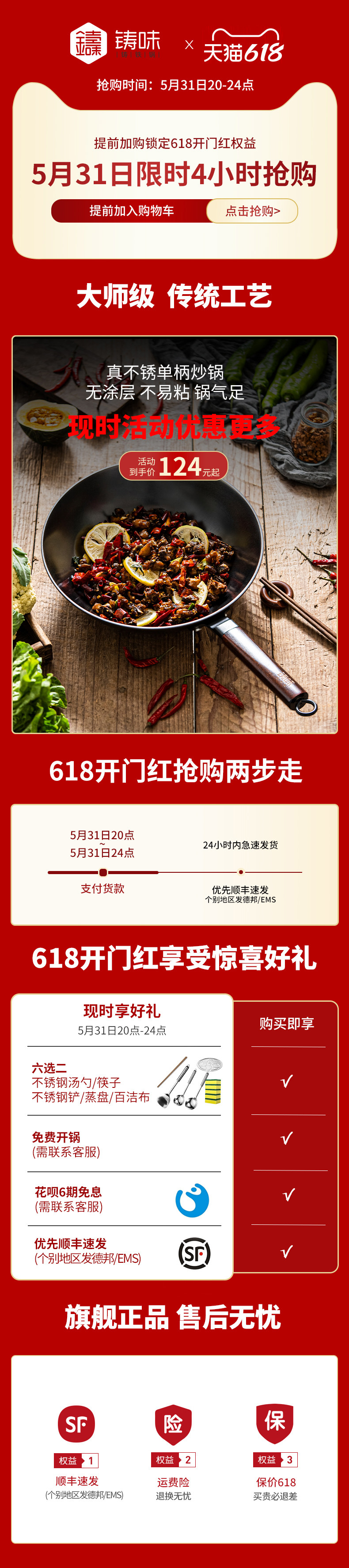 新品新品铸味炒锅38cm真不锈铸B铁锅爆炒炒锅K双耳锅具不易粘锅家