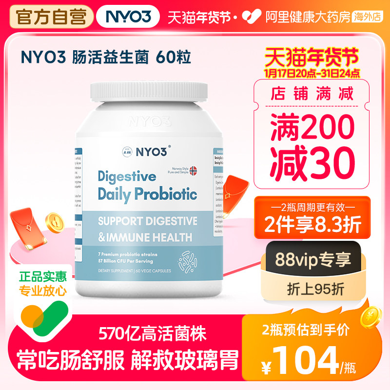 NYO3挪威进口益生菌胶囊大人调理肠胃活性便菌秘结通成人广谱肠道