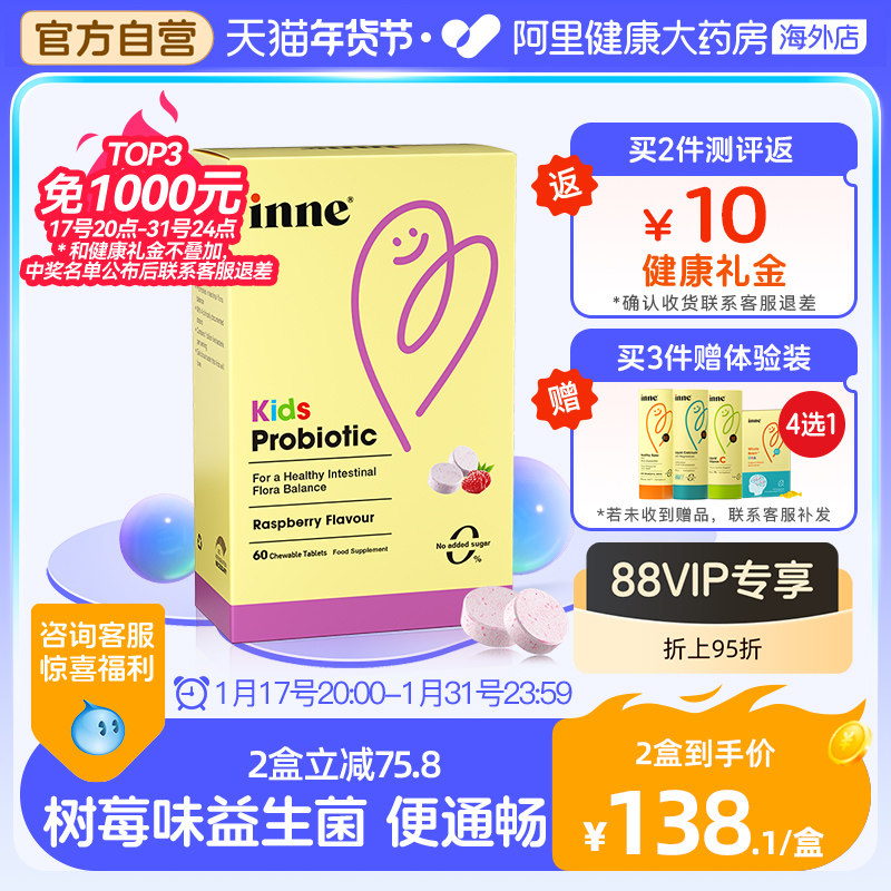 inne婴幼儿童益生菌咀嚼片呵护肠胃益生元含有益菌株