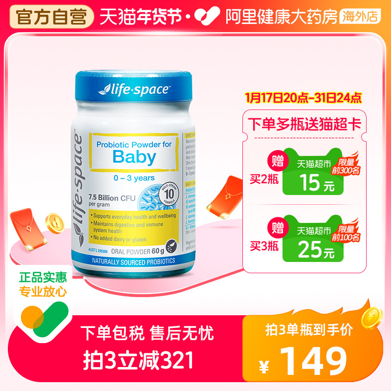 阿里健康自营澳洲lifespace婴幼儿益生菌宝宝儿童益生元6个月-3岁