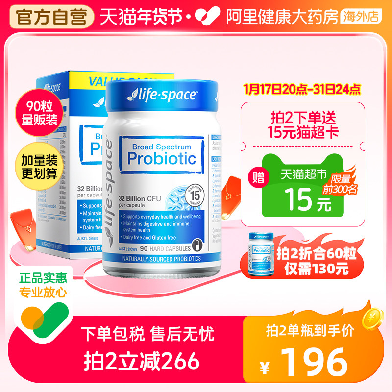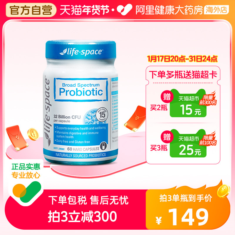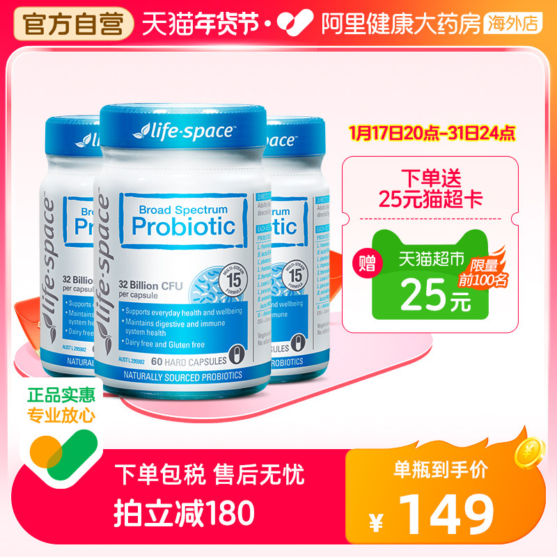 阿里澳洲lifespace成人益生菌肠胃广谱益生菌3瓶活性菌调理肠道