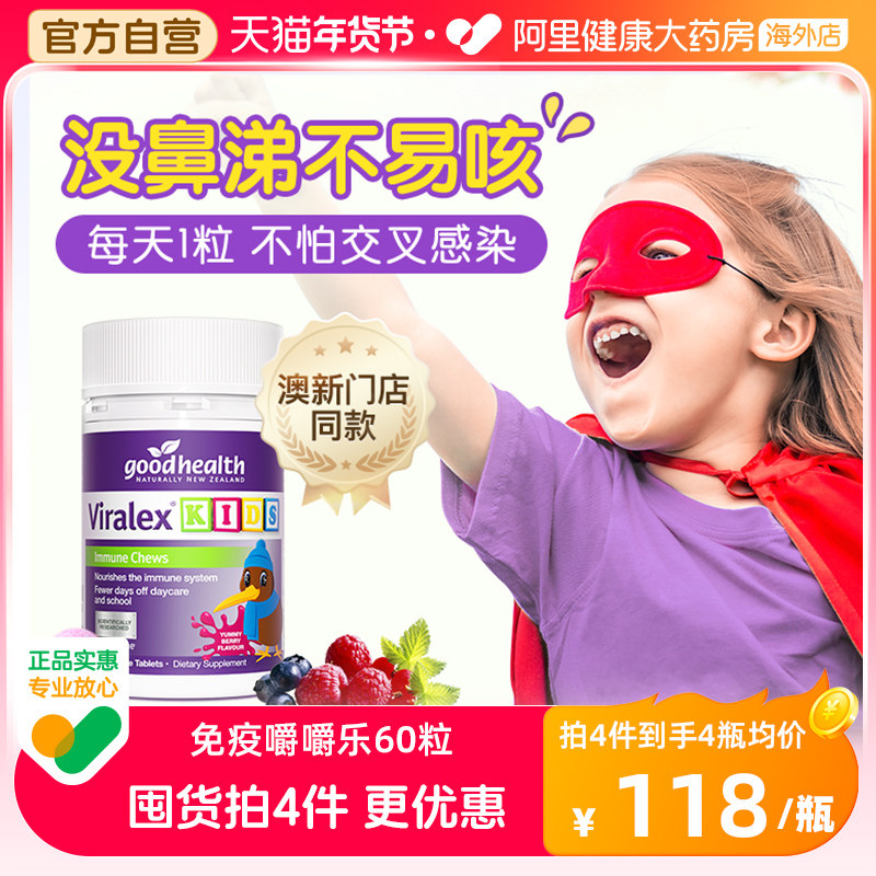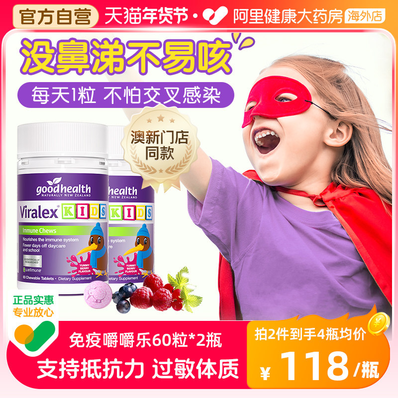 goodhealth免疫嚼嚼乐婴幼儿童酵母β葡聚糖抵抗力益生菌60粒*3瓶