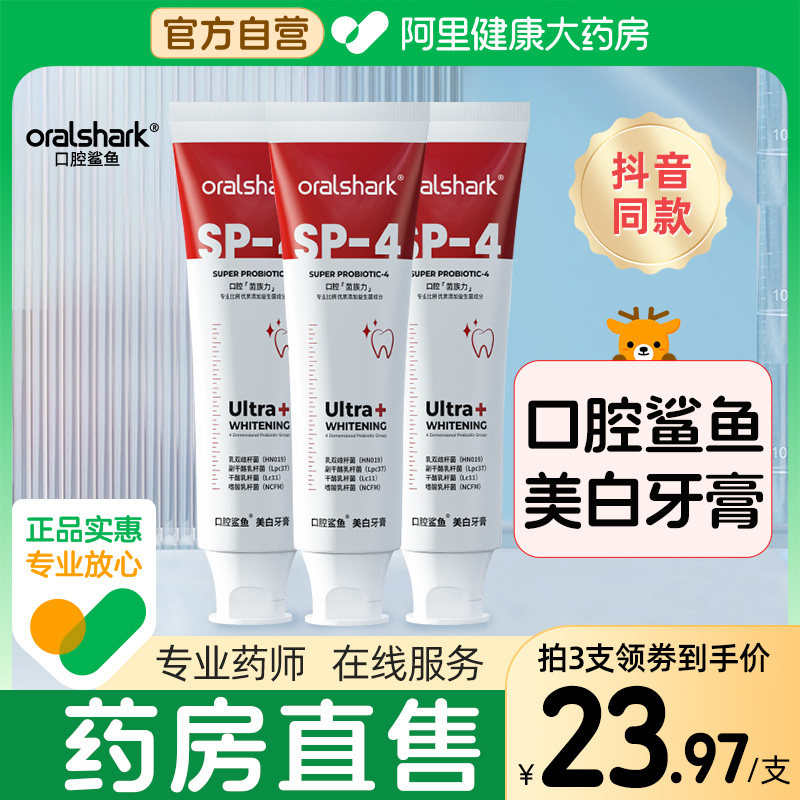 参半oralshark口腔鲨鱼美白牙膏益生菌清新去黄去口臭正品旗舰店