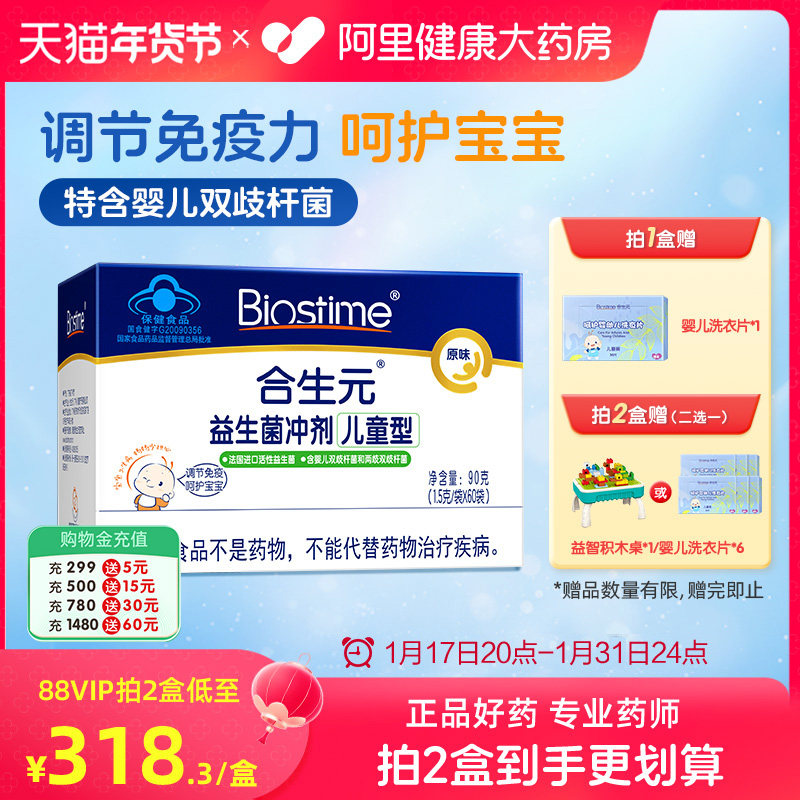 合生元益生菌冲剂60袋原味婴儿双歧杆菌助于增强免疫力调节免疫力