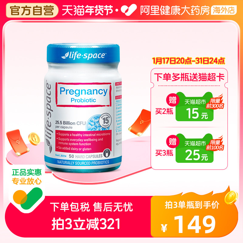澳洲lifespace孕妇孕期益生菌益生元胶囊50粒*2调理产后澳大利亚