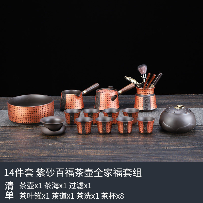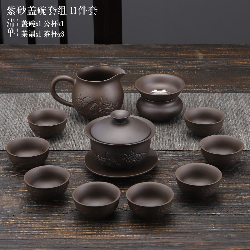 陶明堂高档紫砂茶具茶杯套装家用泡茶办公室会客手工陶瓷茶壶盖碗