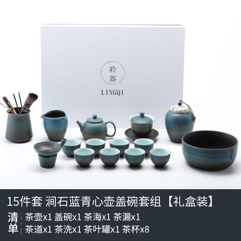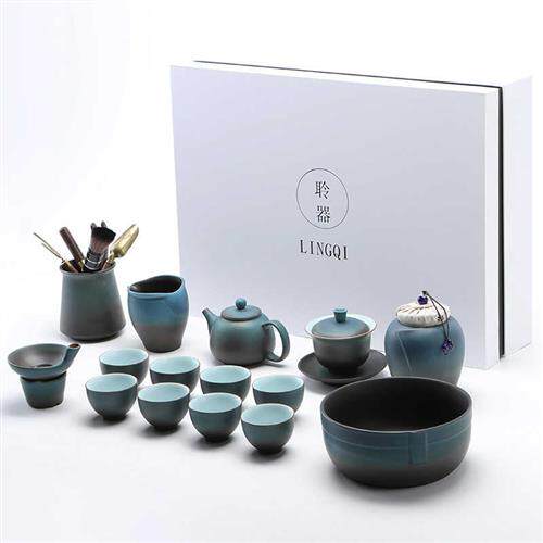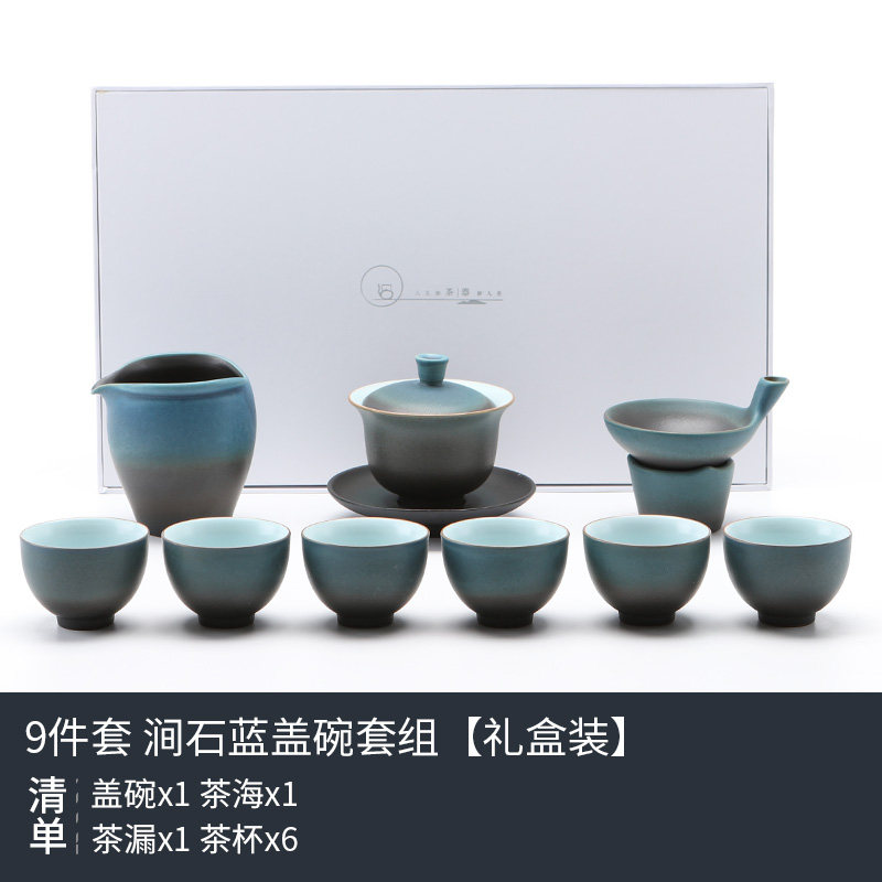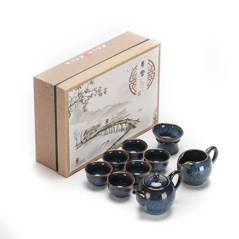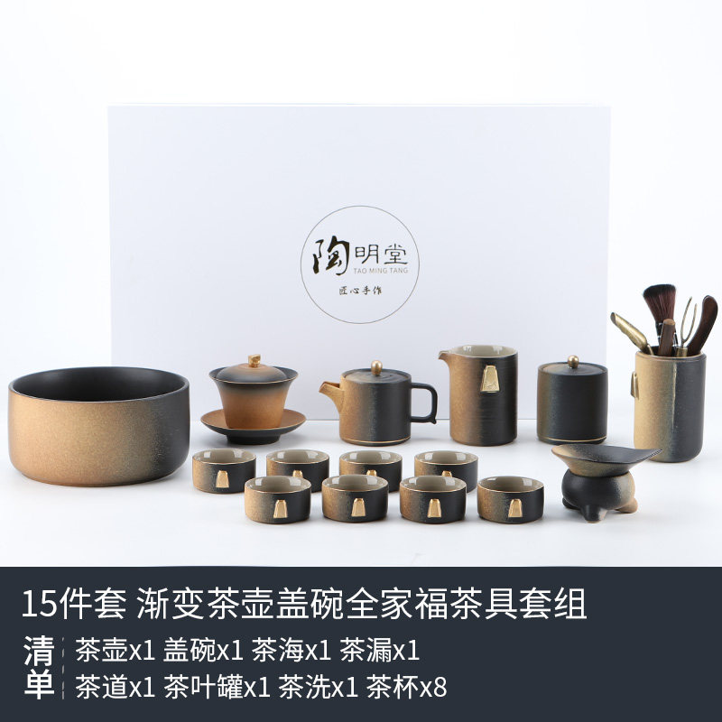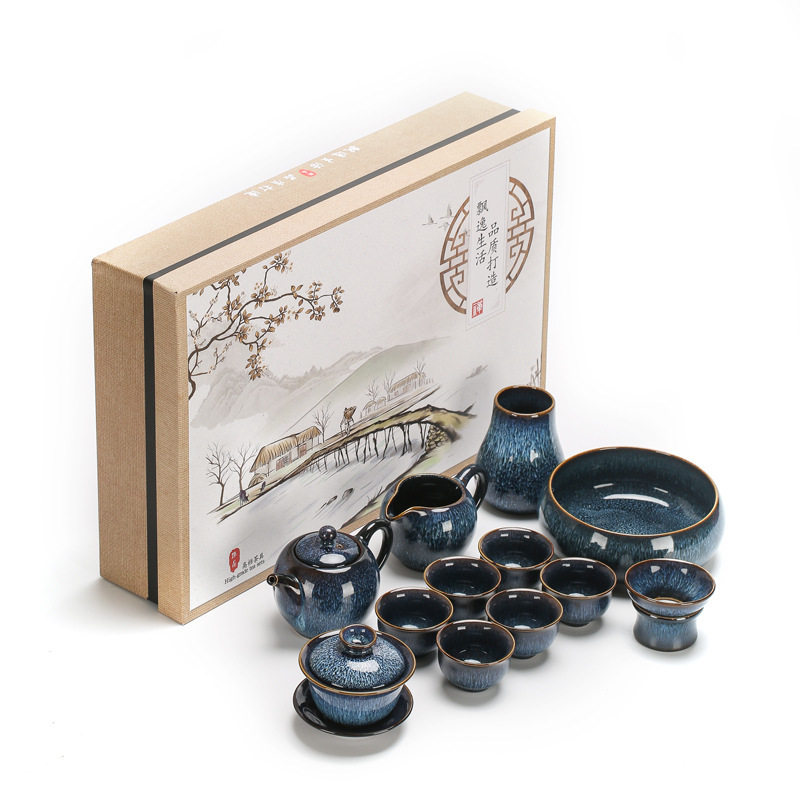 陶明堂窑变功夫茶具套装建盏家用陶瓷泡茶壶盖碗中式商务礼盒送人