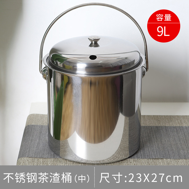 陶明堂不锈钢茶水桶茶渣桶带盖过滤茶桶功夫茶具排水垃圾桶