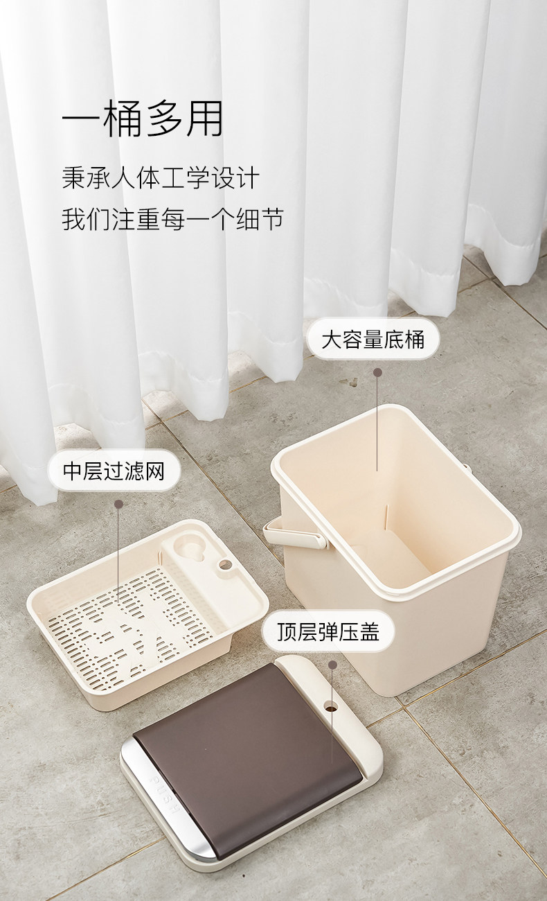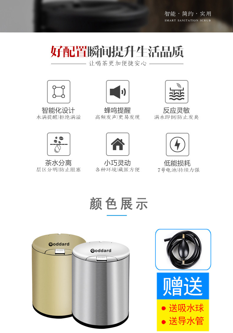 陶明堂智能感应茶水桶茶具废水排水桶按压式收纳桶不锈钢茶渣桶
