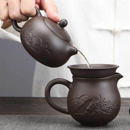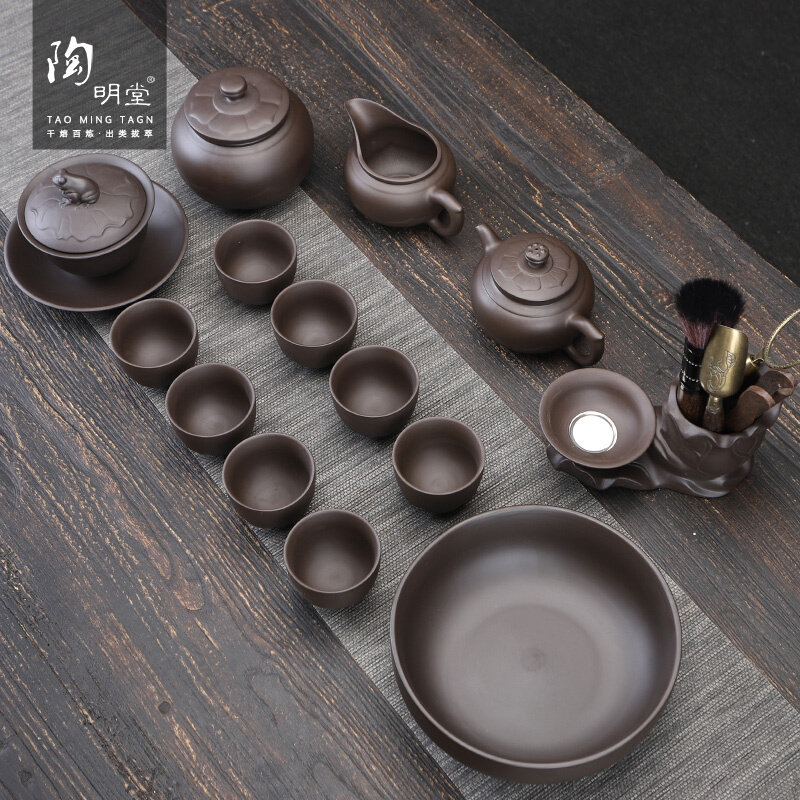 陶明堂紫砂功夫茶具套装办公室会客手工茶壶茶杯复古陶瓷泡茶器