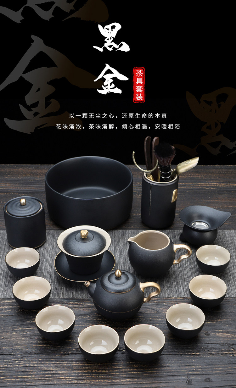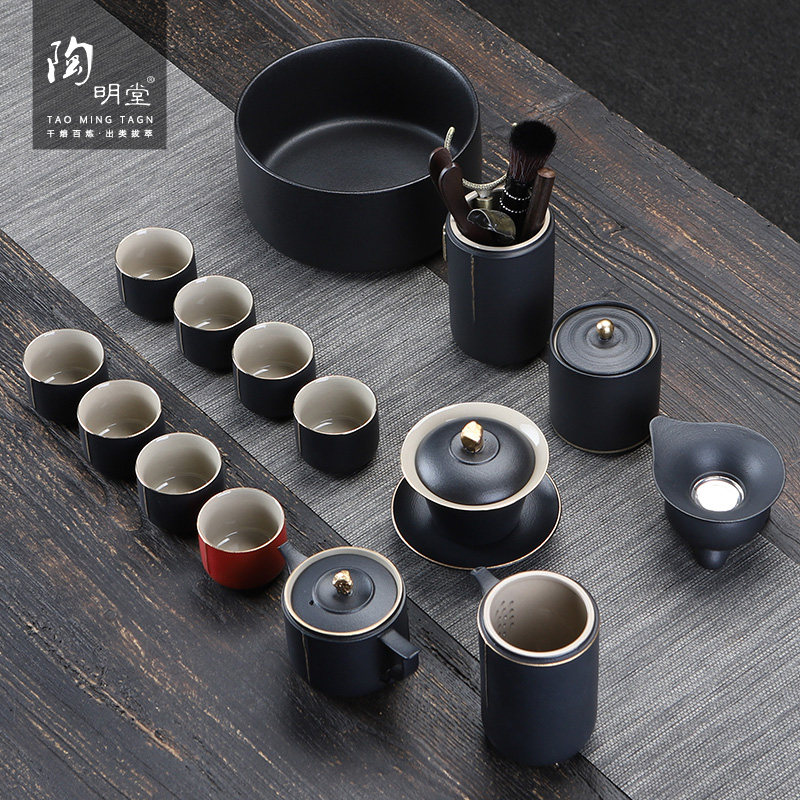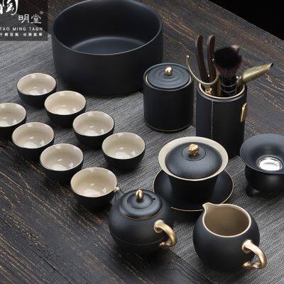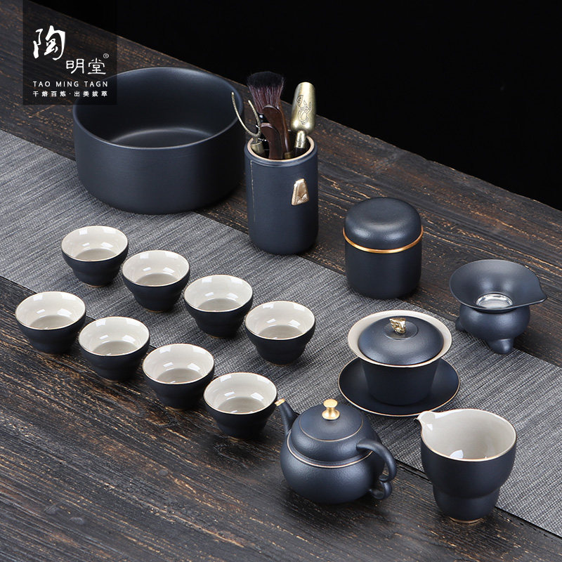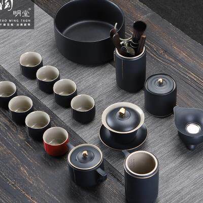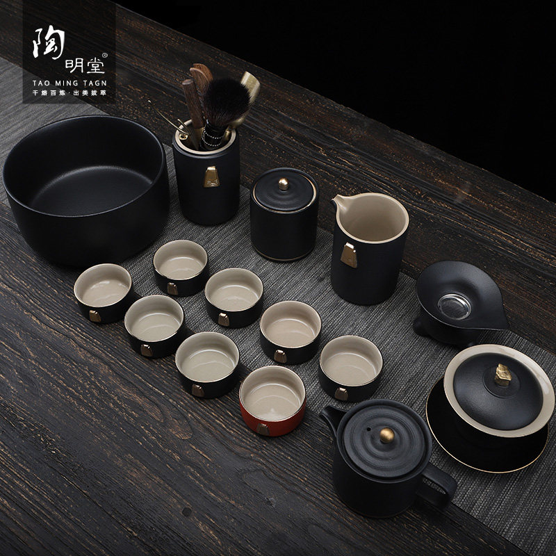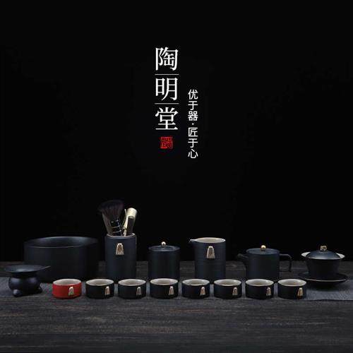 陶明堂功夫茶具套装轻奢高档家用欧式现代盖碗新中式黑陶泡茶茶具