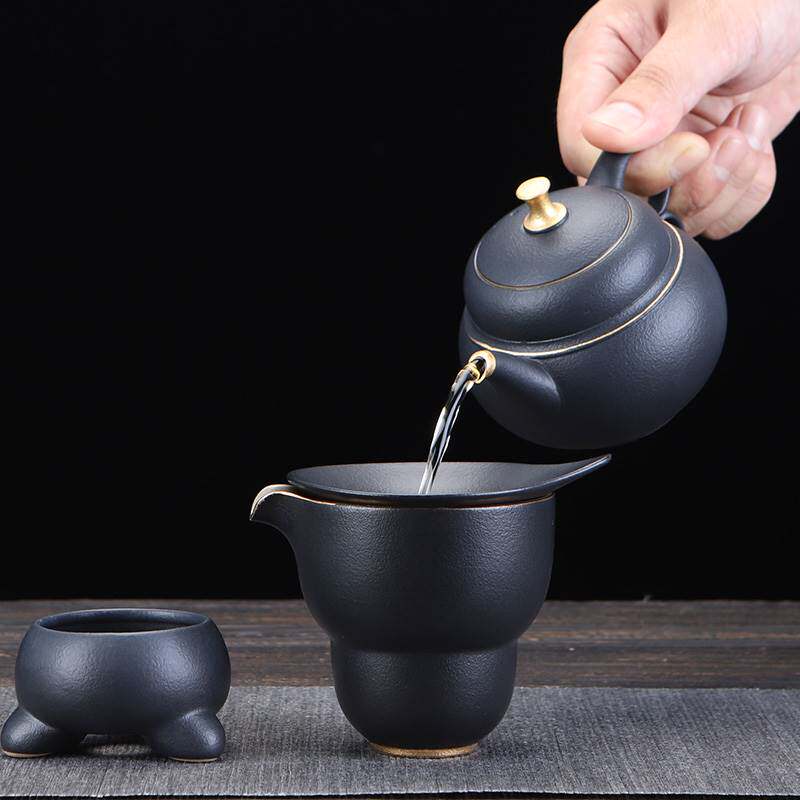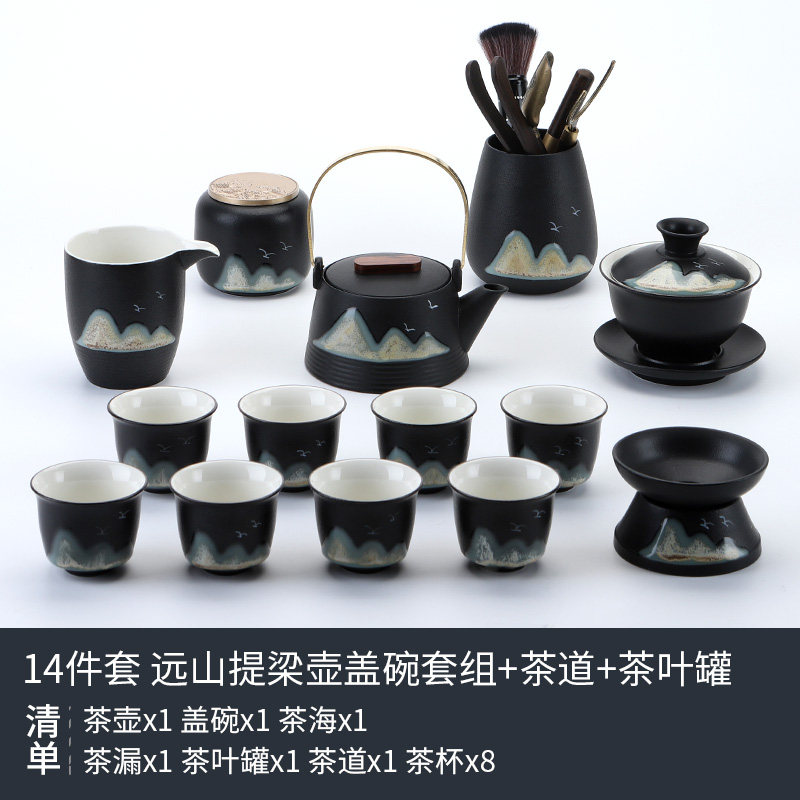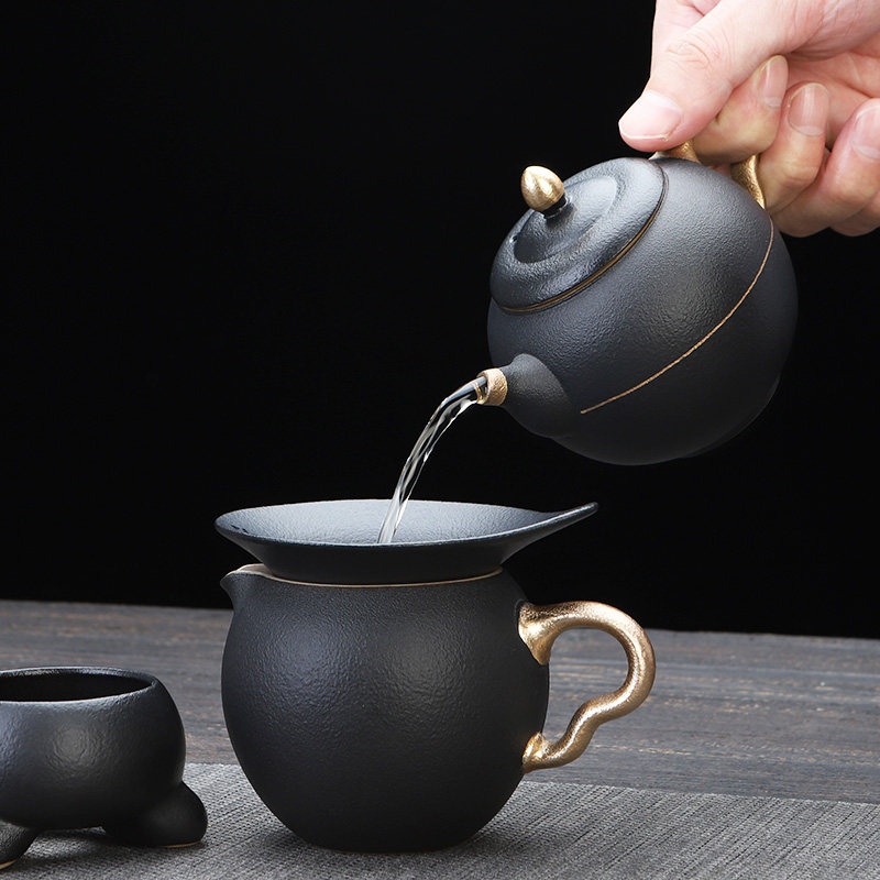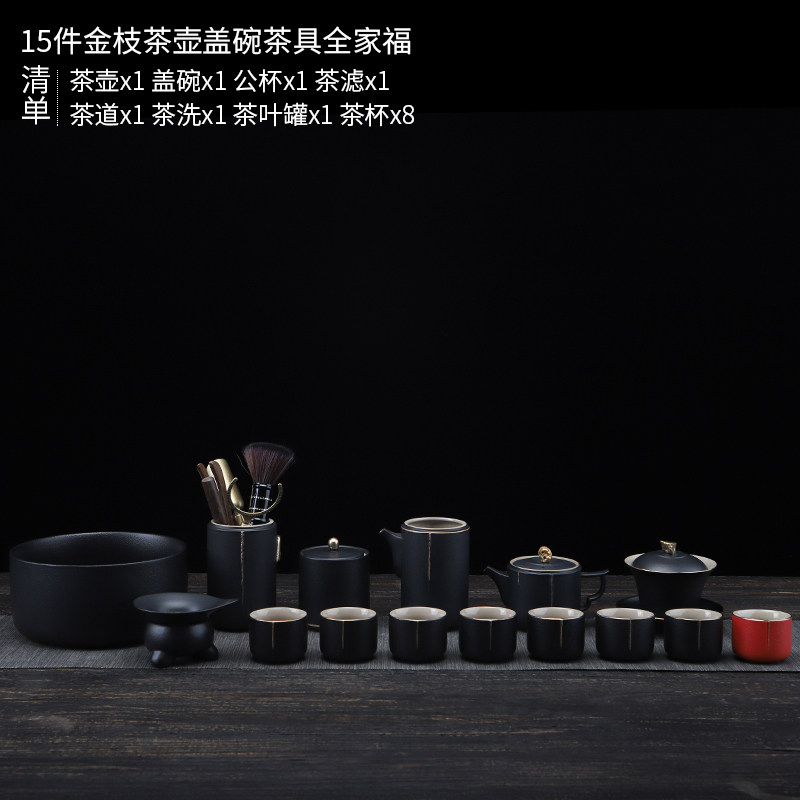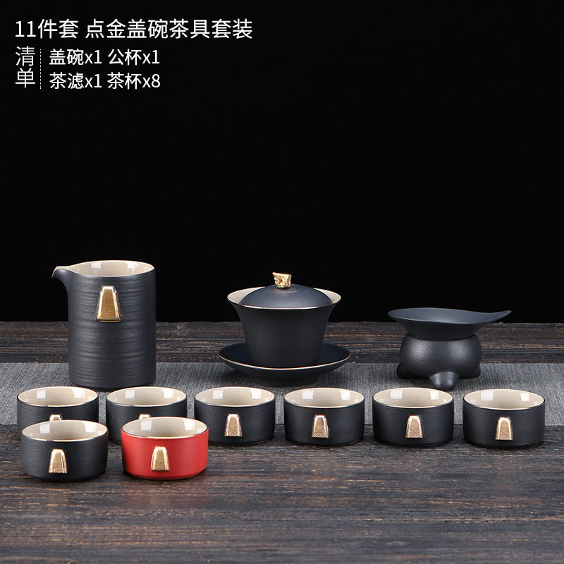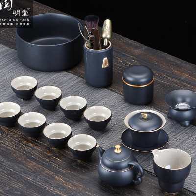 陶明堂功夫茶具套装轻奢高档家用欧式现代盖碗新中式黑陶泡茶茶具