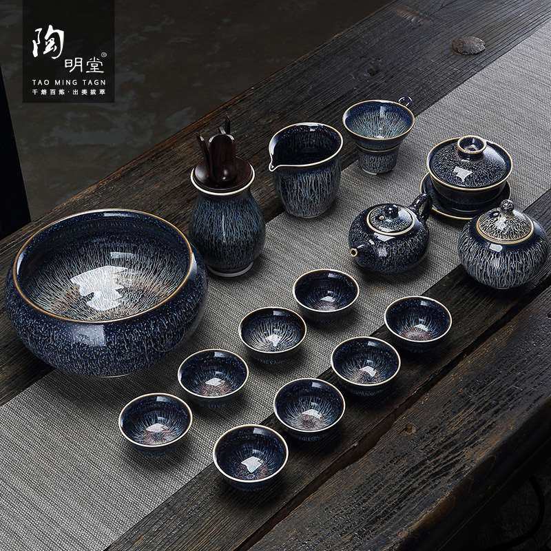 陶明堂天目建盏木叶盏功夫茶具套装家用整套陶瓷茶具用品懒人自动