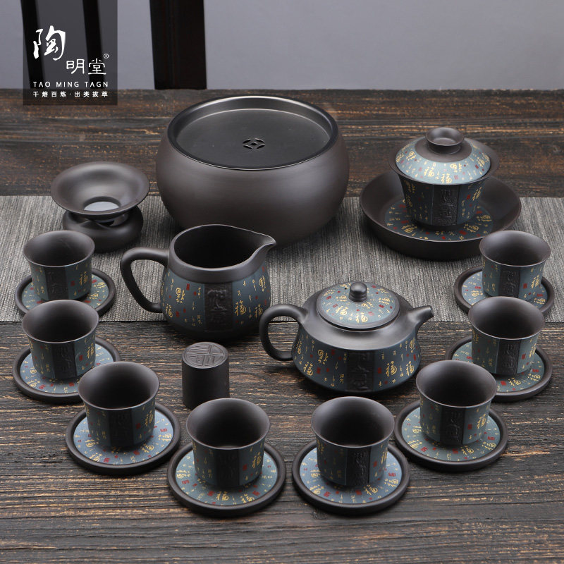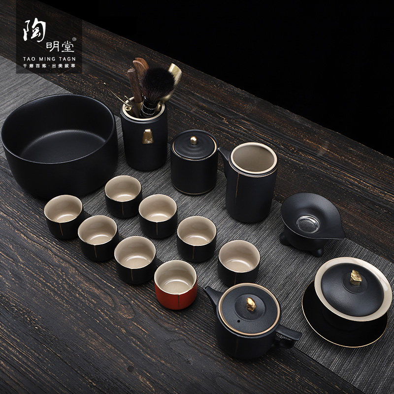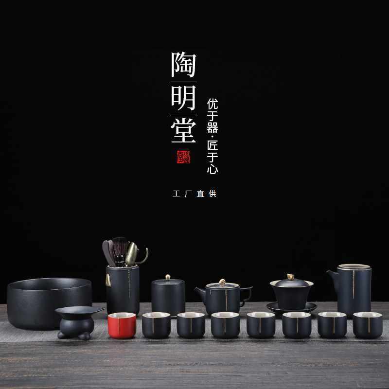 陶明堂茶具茶盘套装家用高档乌金石套组客厅办公室会客泡茶功夫