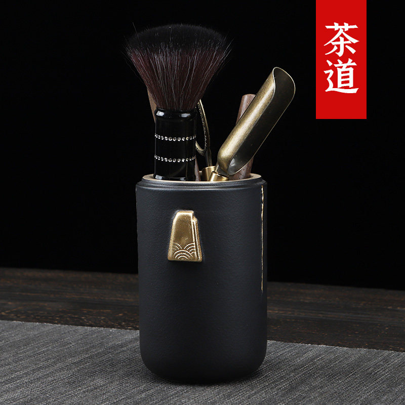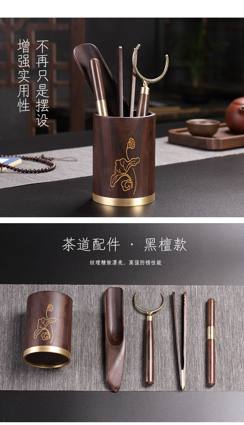 陶明堂茶具配件茶道六君子陶瓷套装黑檀木鸡翅木功夫茶具茶艺配件
