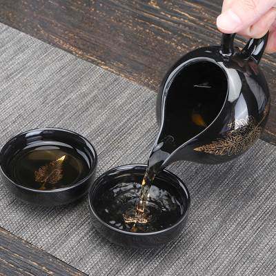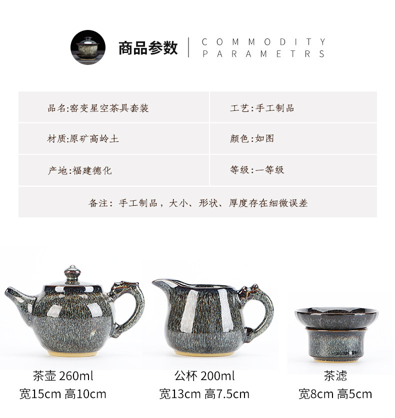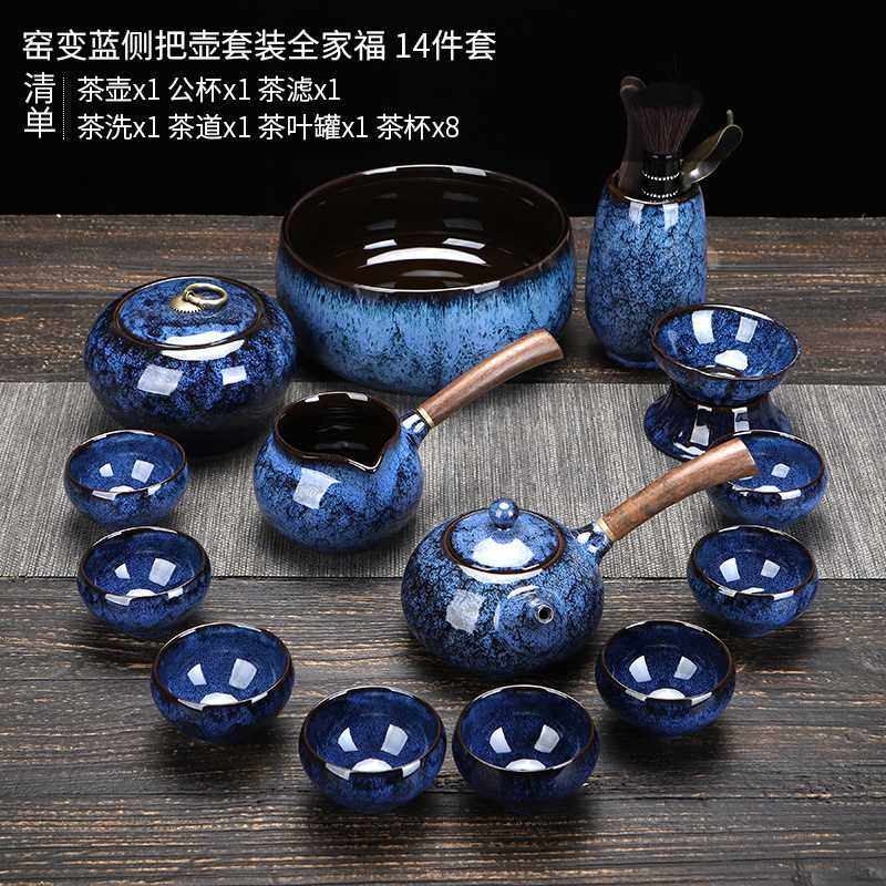 高档陶明堂窑变茶具套装功夫茶杯家用办公室会客陶瓷泡茶建盏侧把