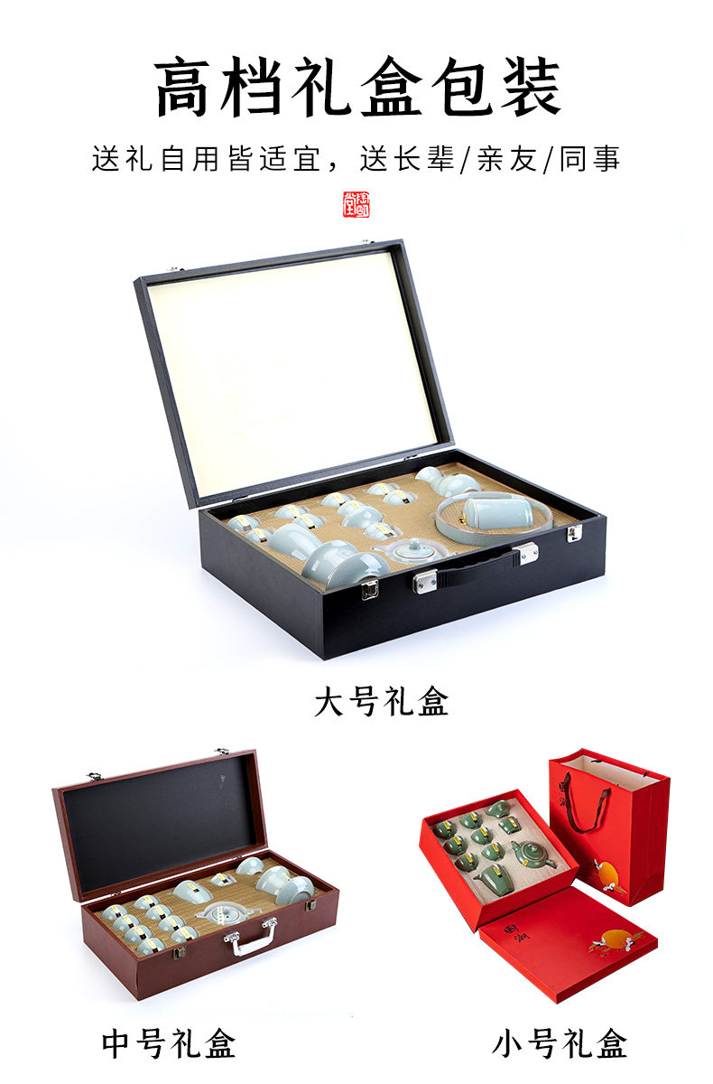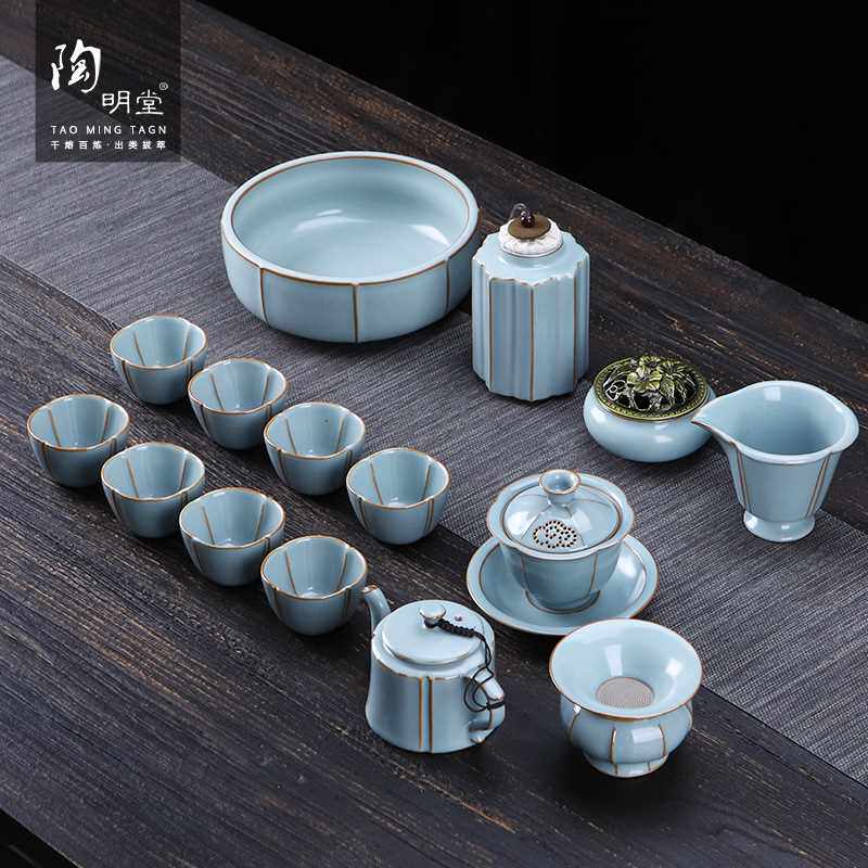 陶明堂哥窑功夫茶具套装家用办公高档轻奢开片陶瓷泡茶壶中式礼盒