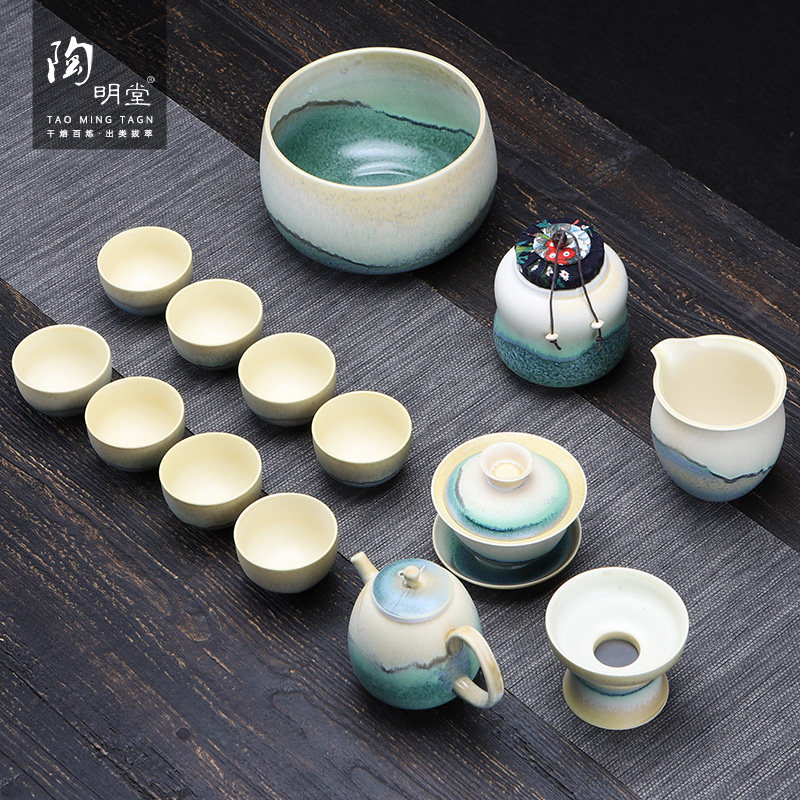 陶明堂茶具套装家用功夫泡茶高档现代办公室会客盖碗陶瓷茶杯套组