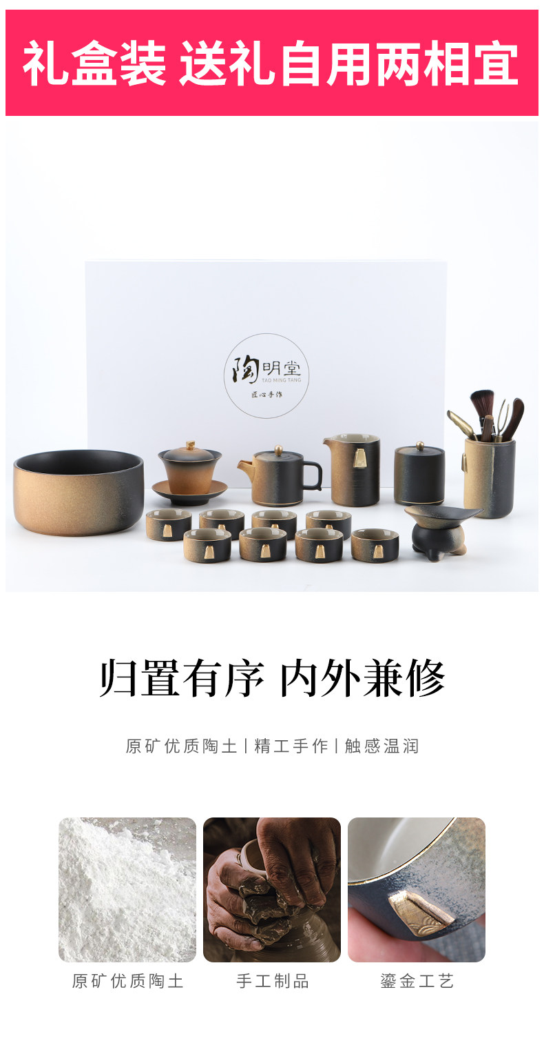陶明堂粗陶茶具套装家用高档办公室会客轻奢一套陶瓷功夫茶壶茶杯