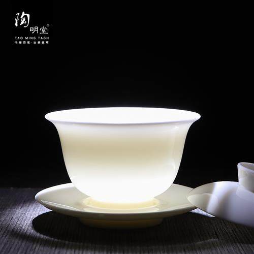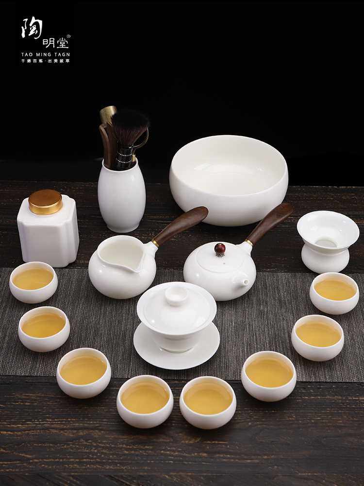 陶明堂羊脂玉功夫茶具套装德化白瓷茶杯家用客厅办公室泡茶壶盖碗