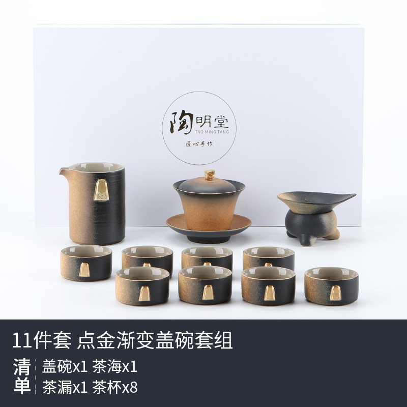 陶明堂功夫茶具套装简约渐变轻奢办公家用喝茶泡茶日式茶壶盖碗