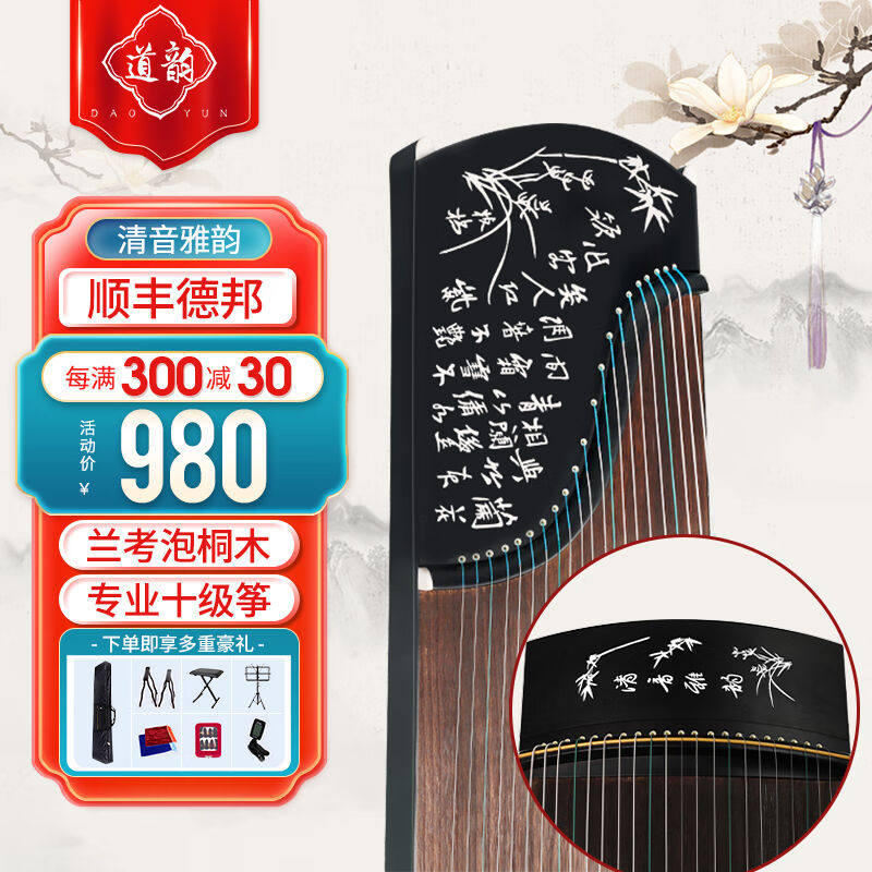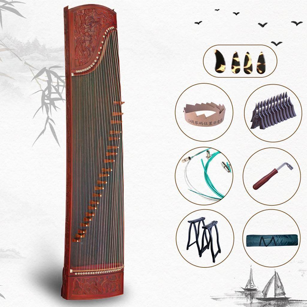 正品雅韵品牌高档古筝楠木雕刻演奏考级送古筝架指甲胶布琴弦全套