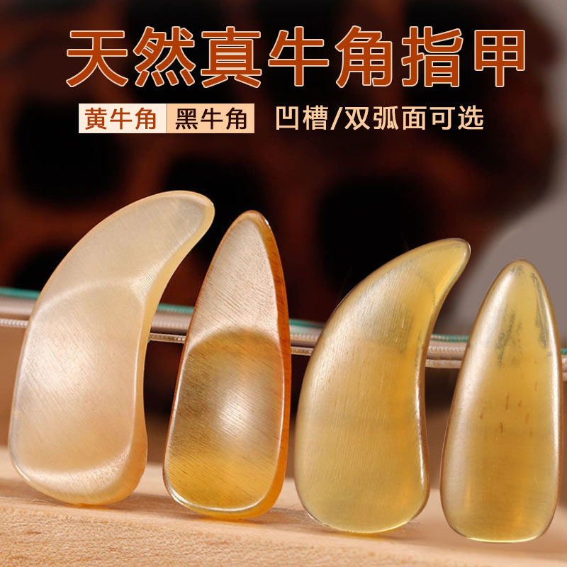 天然牛角古筝指甲专业演奏级成人儿童初学凹槽双面弧黑黄牛角义甲