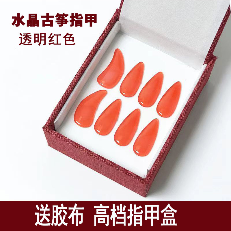 水晶透明红色古筝指甲凹槽成人专业大号儿童初学彩色款琥珀色套装