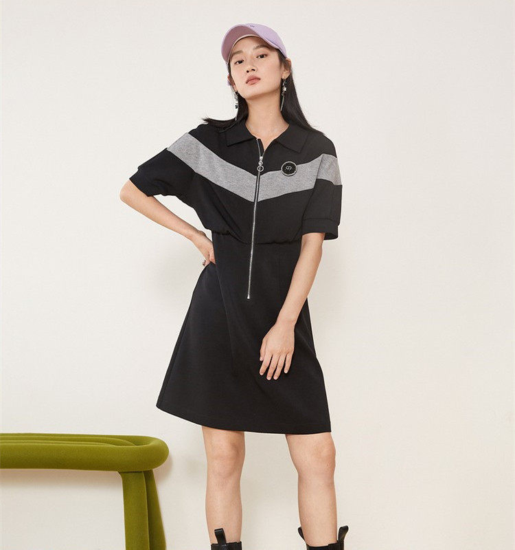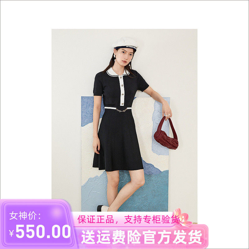 【上新】音儿女装夏季新款金属链条撞色POLO领连衣裙LC32206437