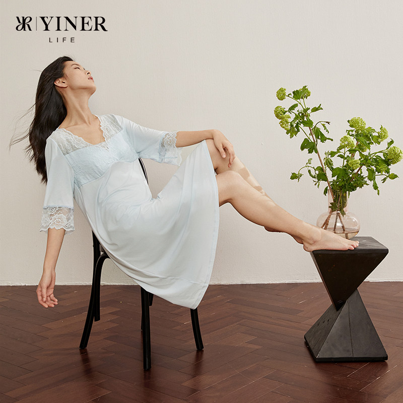 【巴洛克玫瑰】音儿蕾丝带杯睡裙女莫代尔中长款防走光性感连衣裙