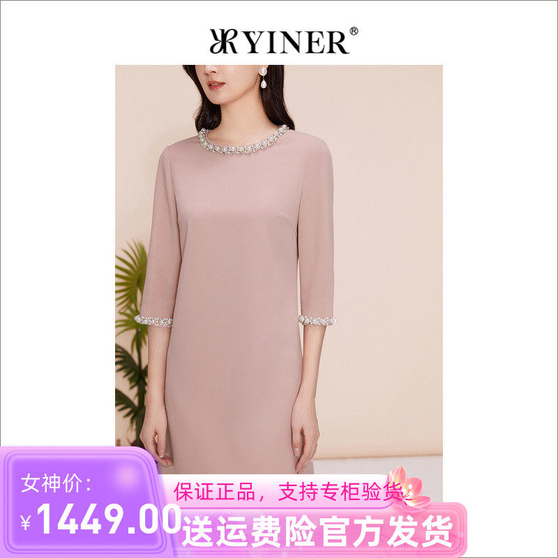 YINER专柜女装2023春季新款优雅钉珠装饰七分袖连衣裙8C63105996