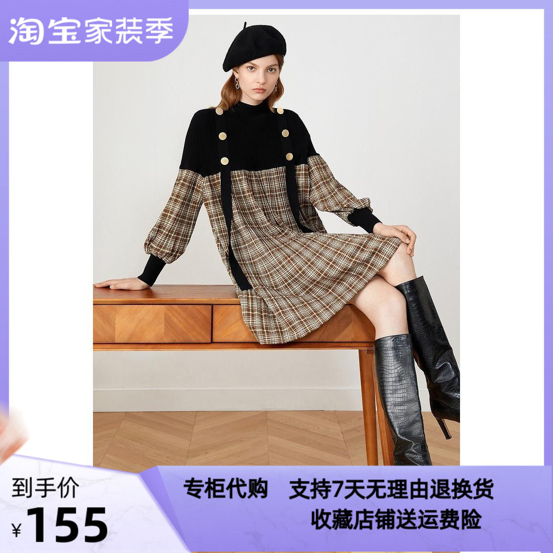 音儿真情女装2022秋季新款时尚气质通勤洋气拼接格子中长款连衣裙