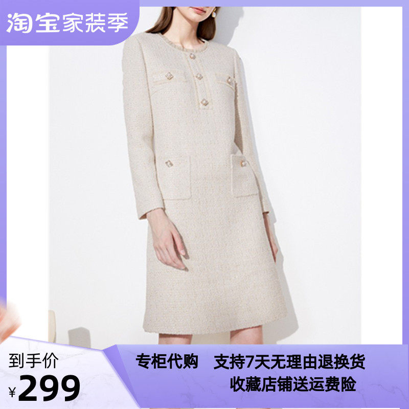 音儿真情2023春新款法式小香风木耳边粗花呢收腰连衣裙LC63105470