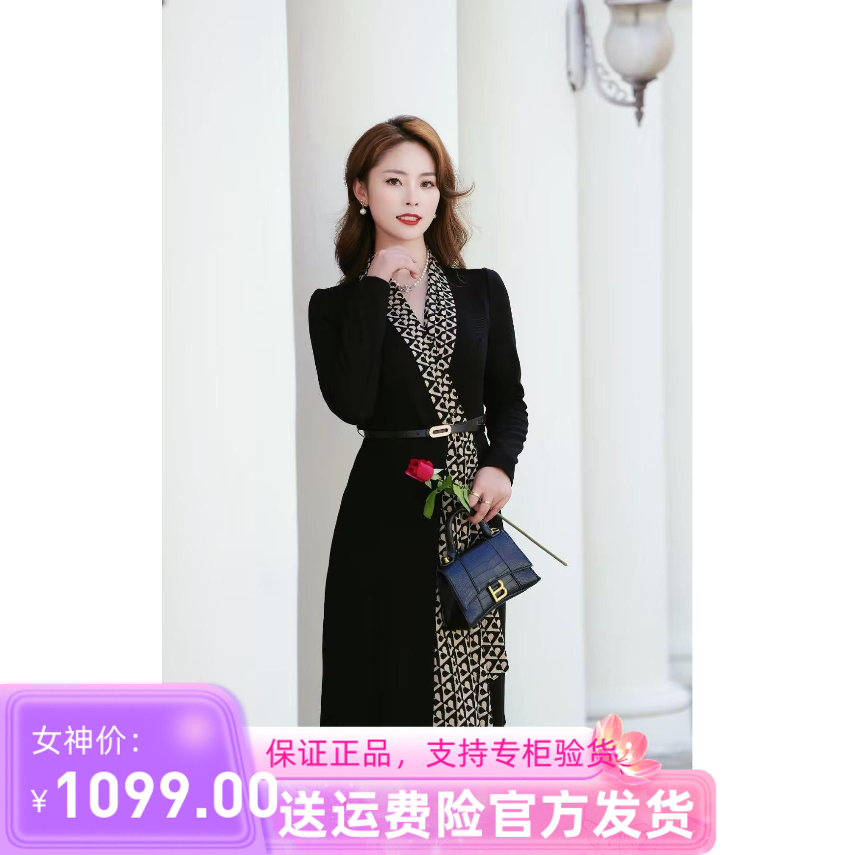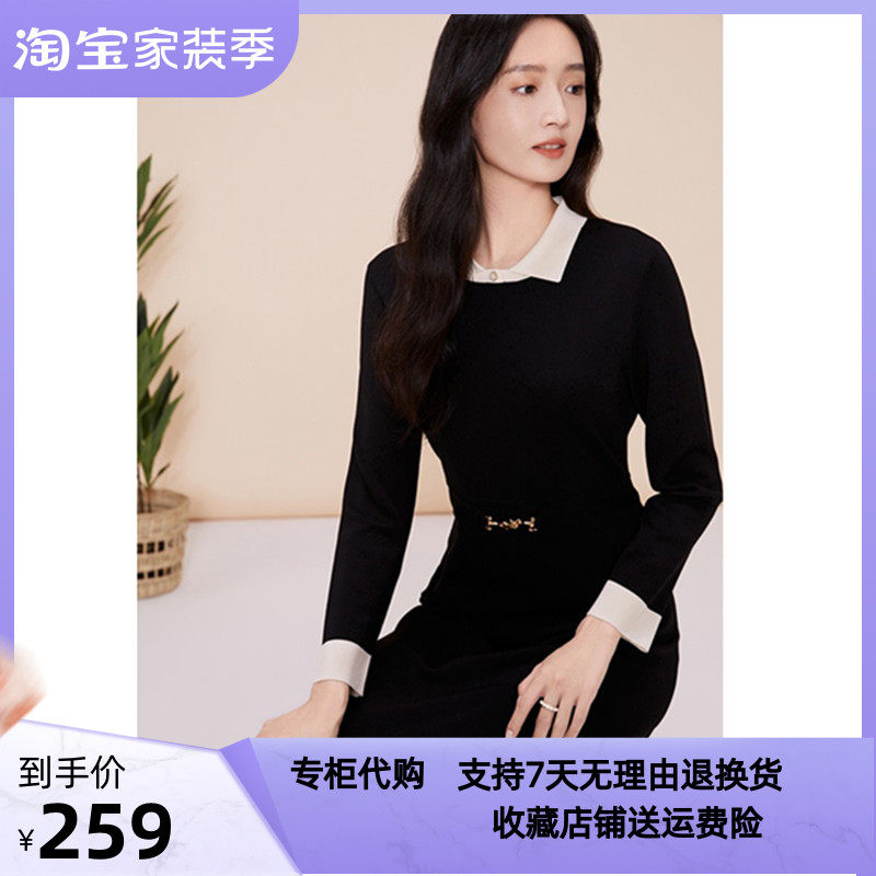 音儿真情女装2023春季新款法式通勤撞色黑色连衣裙8C63106476