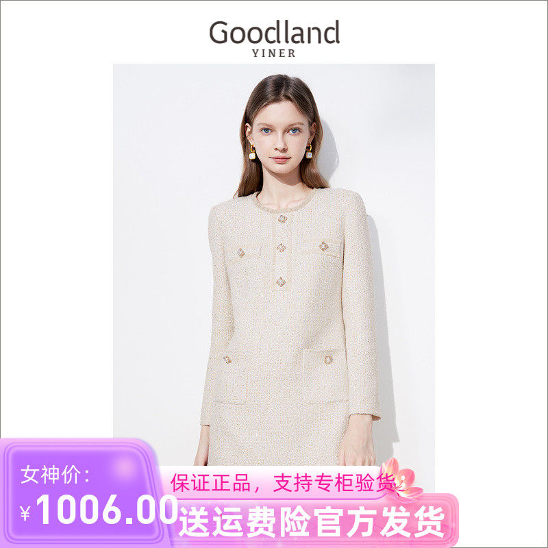 音儿美地女装冬季新款小香风修身粗花呢A字收腰连衣裙高级感
