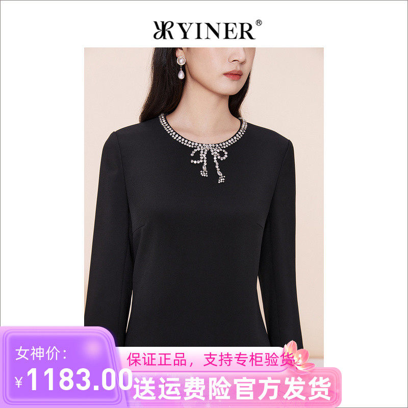 YINER商场同款女装2023春季新款钉钻设计感圆领连衣裙8C63105826