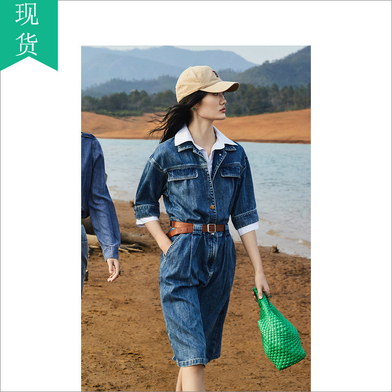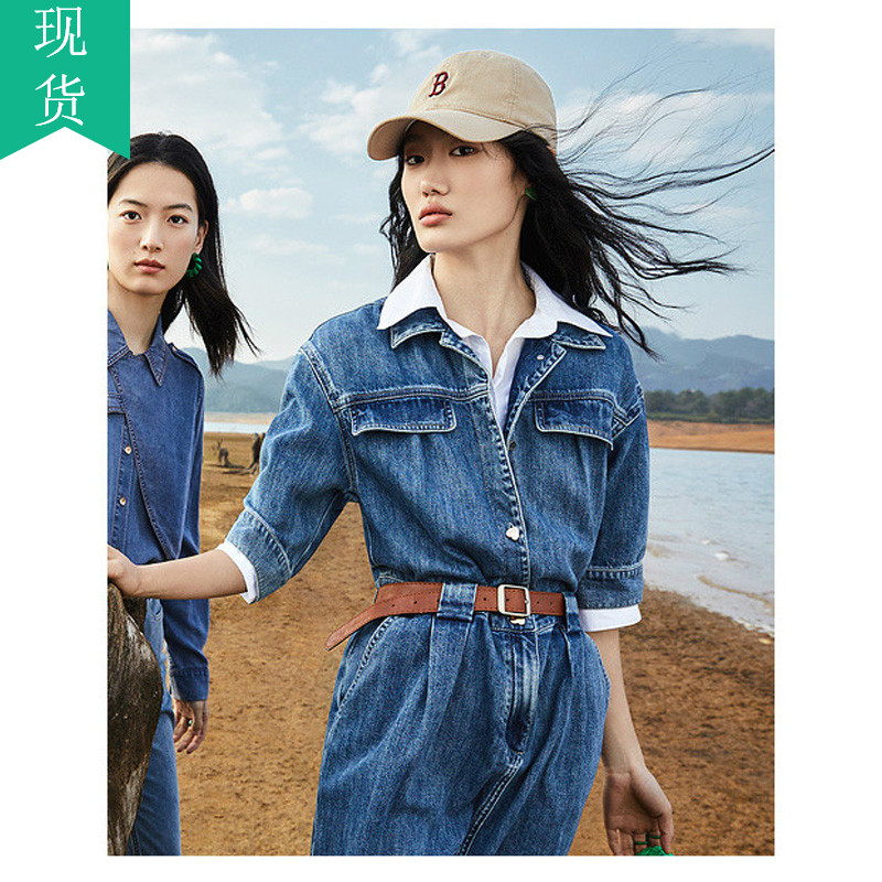 音儿真情女装2023夏季新款蝴蝶花翻领修身牛仔连衣裙LC33205128