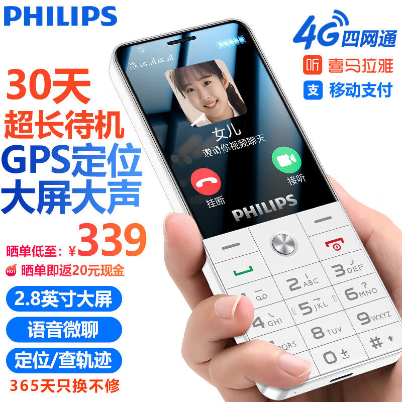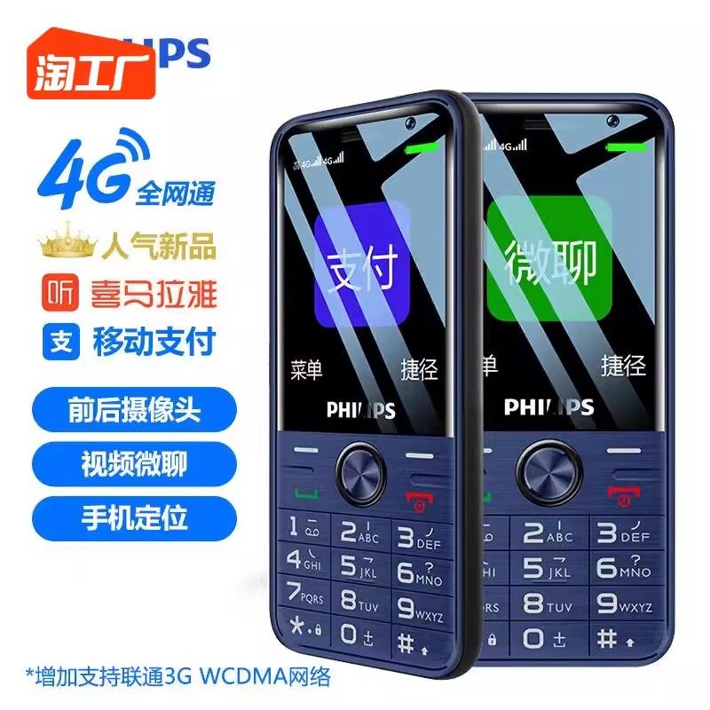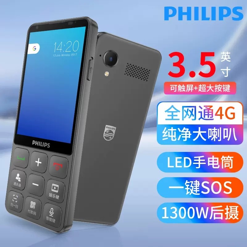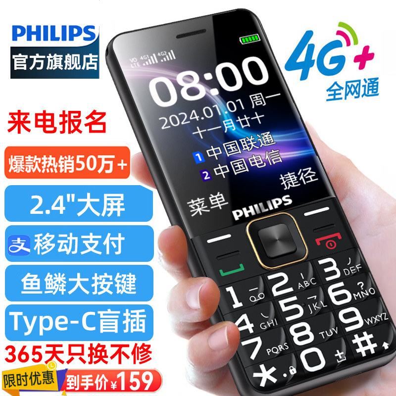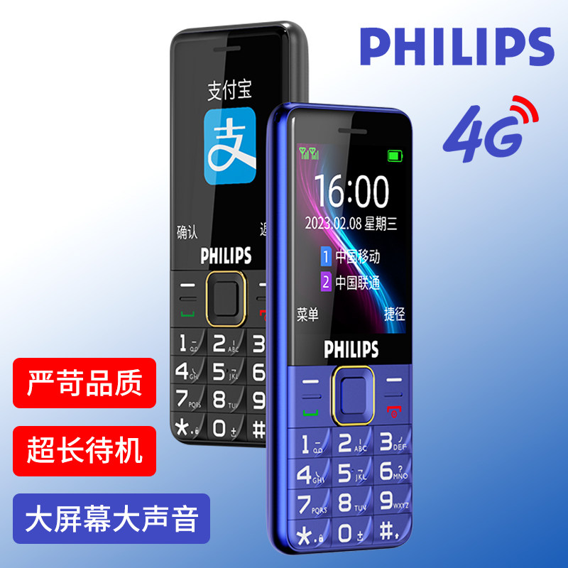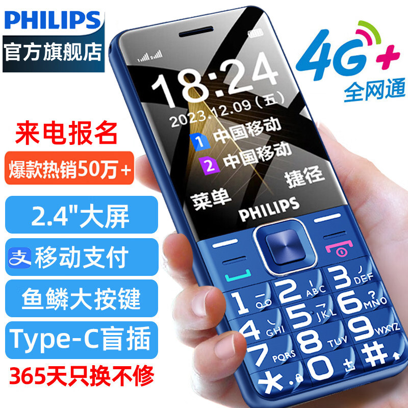 [官方旗舰店]飞利浦4G全网通正品老年机超长待机大声音老人机大屏大字移动联通电信男女学生专用智能按键手机