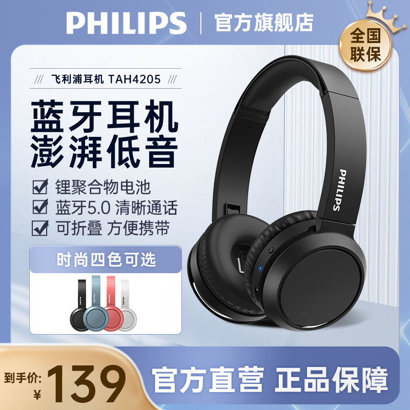 飞利浦TAH4205头戴式无线蓝牙耳机网课学习电脑游戏运动手机耳麦