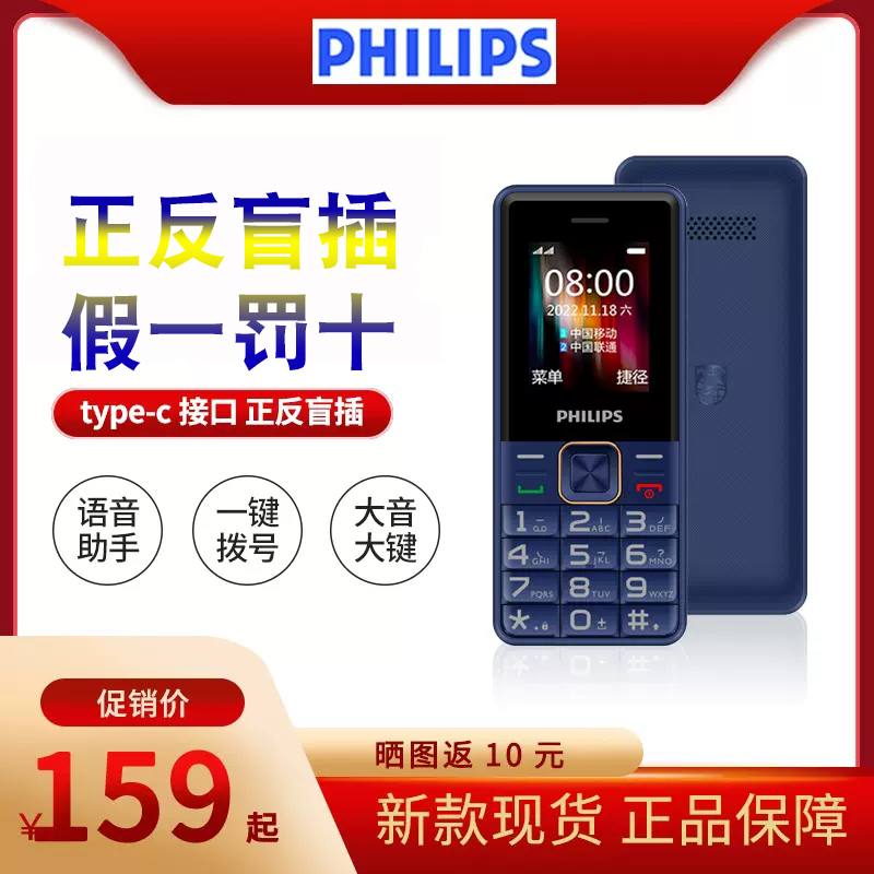 Philips/飞利浦 E129老人手机中小学生儿童正反盲插充电接口E6105