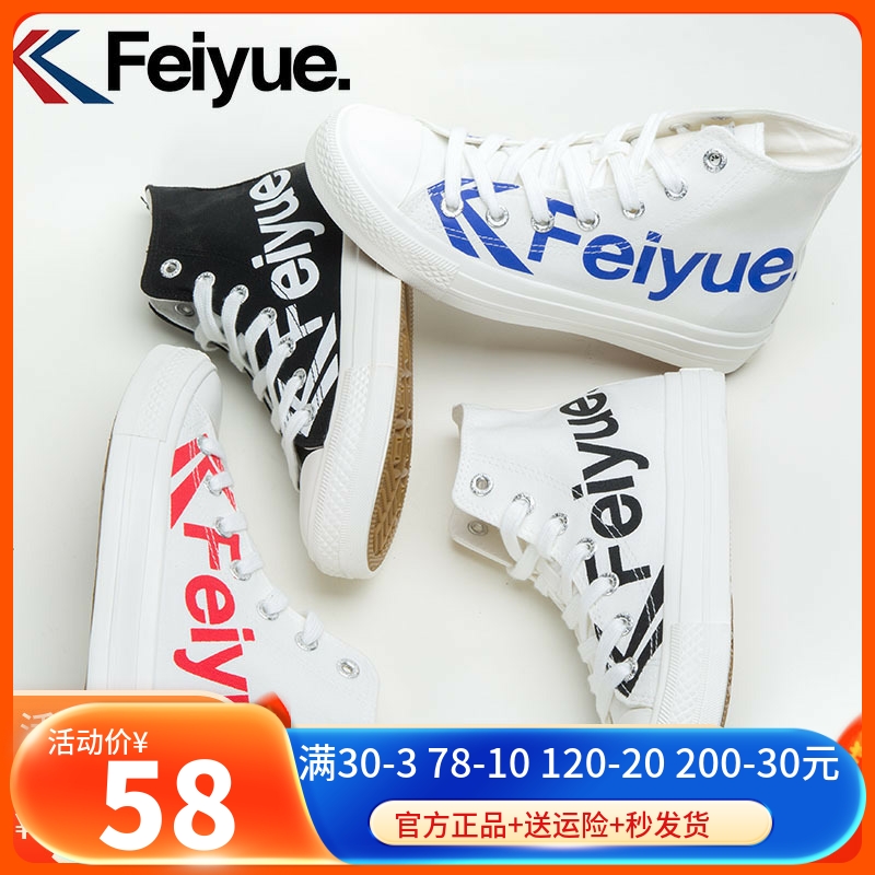 feiyue飞跃字母高帮帆布鞋男女情侣款潮鞋logo小白鞋学生休闲板鞋