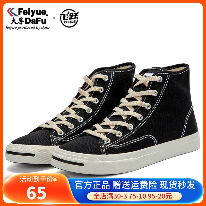 飞跃feiyue秋板鞋高帮复古休闲女鞋大孚飞跃旗舰店黑色男鞋帆布鞋