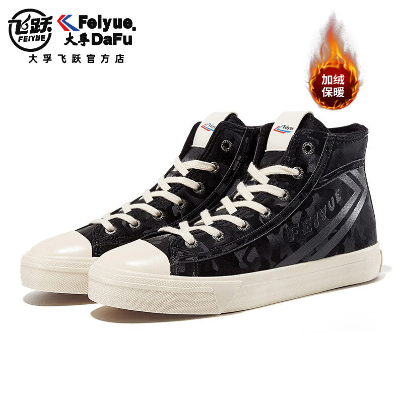 大孚feiyue飞跃雪地靴秋冬新品加绒帆布高帮加厚男女情侣款潮鞋