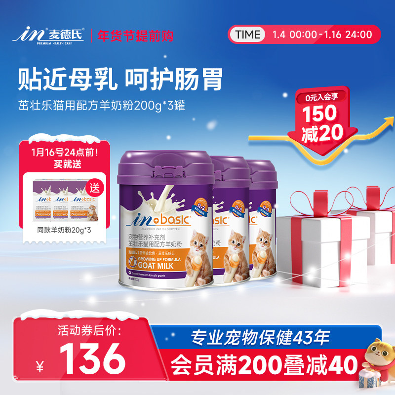 麦德氏羊奶粉猫200g*3宠物猫咪专用营养品幼猫羊奶粉